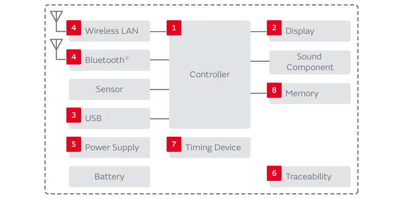 • Bluetooth® Smart模块、NFC (Near Field Communication) 等无线通信模块与网络连接,为方便日常的健康管理做出贡献。