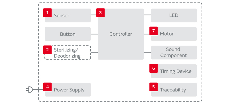 空调设备、冰箱、洗衣机等日常生活中的家电产品,越来越注重节能、环保及有利健康的方面。村田公司提供低损耗、耐久的陶瓷电容器,高转换效率电源模块为节能做出贡献。在智能家电领域,提供进行空气净化的负离子发生器,具有杀菌、除味、保持蔬菜新鲜度和营养的活氧发生器。还提供这种传感器、无线通信模块、微型计算器周边部品,为人类与地球做出贡献。