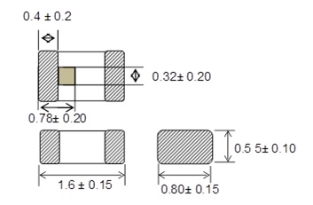 - Small size at L:1.6×W:0.8×T:0.55mm (Typ.)
