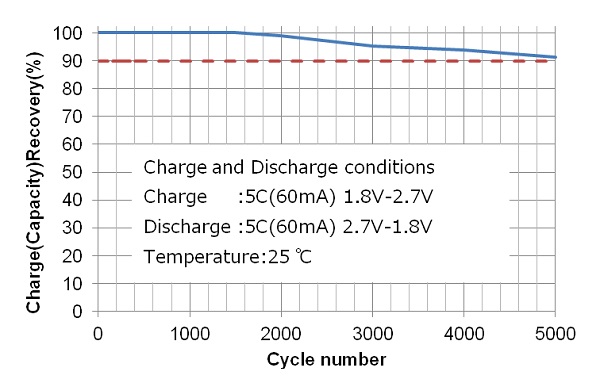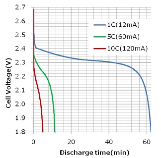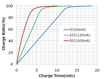 - Flat voltage characteristics permit use immediately after charging starts for stable device operation.
