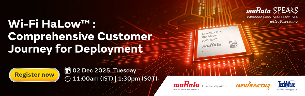 Join Murata and our partners Newracom and Techware as we simplify the complexity of Wi-Fi HaLow™ integration. This webinar will guide OEMs through the essential testing and integration journey, providing practical steps to ensure performance, low-power efficiency, and seamless deployment for your next-generation IoT devices.