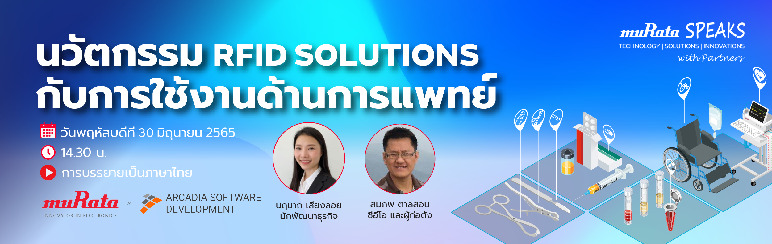 Murata x Arcadia ที่จะช่วยให้การปฎิบัติงานทางการแพทย์มีประสิทธิภาพ ลดต้นทุนค่าดำเนินการ สามารถตรวสอบและติดตามข้อมูลการใช้งานทั้งก่อนและหลังได้