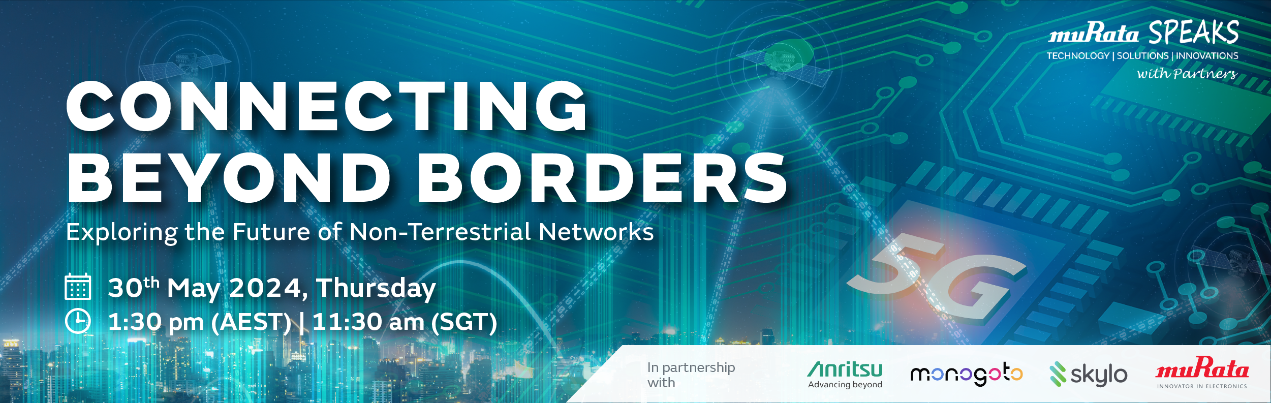 In this webinar, join Murata, a leading manufacturer of electronic components and integrated modules, and partners will show you how to scale your IoT solutions with NTN technology that extends existing cellular networks (4G/5G), providing seamless global outdoor coverage, guaranteeing your devices stay connected wherever they roam.