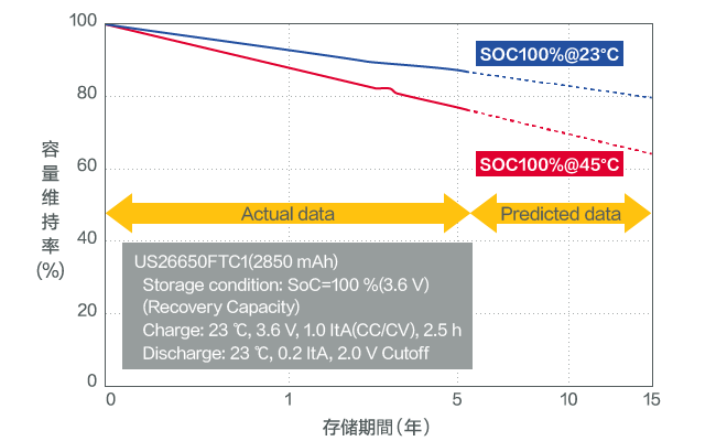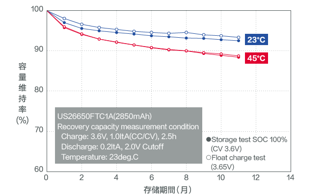 即使在浮充电状态下(在施加充电电压的状态下存储的状态),容量衰减也较为缓慢。