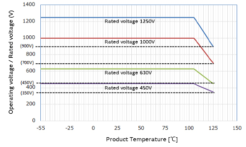 When the product temperature exceeds 105℃, please use this product within the voltage and temperature derated conditions in the figure below.