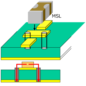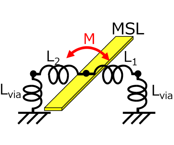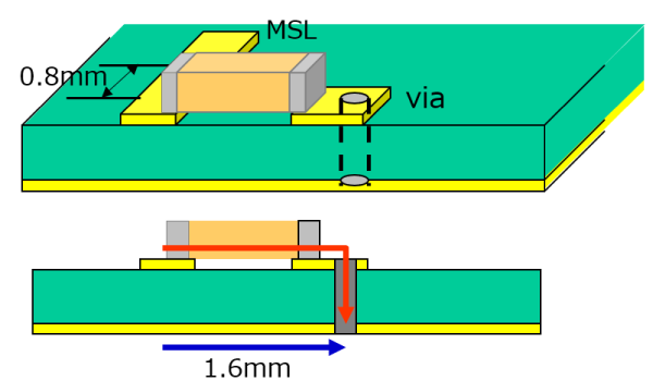 如图所示,MSL(微带线路)中心到通孔的距离不到NFM的一半。因此,电感值可降至NFM的一半以下。