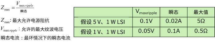 在LSI电源电路中,需要将电源阻抗控制在1Ω或更小的范围内。