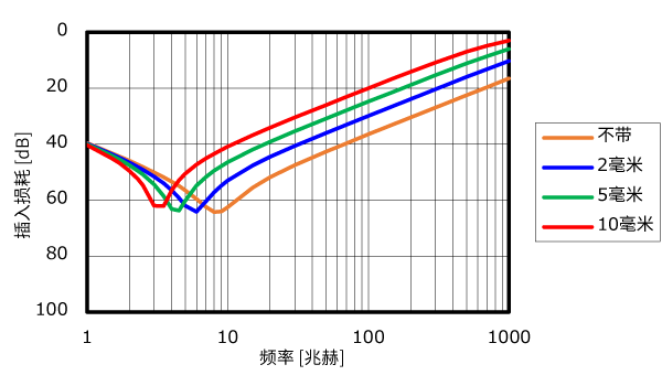 插入损耗随连接1uF叠层电容器的布线长度而变化