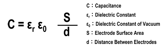 The capacitance of a capacitor increases the wider the electrode area, the higher the dielectric constant, and the narrower the distance between the electrodes.
