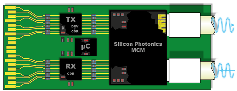 The use of 400 Gb / s (400 GbE) Ethernet is becoming more widespread in next-generation data centers, and R&D of Ethernet above 400 Gb / s has already started. The demand for higher speeds and wider bandwidth will continue to accelerate in the future. Murata's silicon capacitors are ideal for use in ultra-wideband optical communication devices, with their very low insertion loss and very small size which help reducing power and footprint. As you might already know, in the case of 400GbE and 800GbE, high modulation rates such as 56GBaud and 112GBaud per signal line are required. They are well supported with our UBB SMD silicon capacitor (UBSC-serie for example). In parallel, the demand for Silicon Photonics type optical transceivers is increasing as well as the conventional legacy type optical transceivers. In addition, form factors are changing, such as On-Board Optics and Co-Packaged Optics, which require new design concepts and unique electronic components. Customization of dedicated products is also our strength if required.