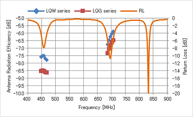 Particularly, since UHF bands (470-800MHz) are used in antennas for MDTV(ISDB-T/CMMB/DVB-H) , it is difficult to miniaturize the antenna. As a method of miniaturization, adjustment of the resonance frequency by the inductor can be mentioned; however, it is necessary to select components taking into consideration the deterioration of the antenna characteristics. Antennas which cover the 700 MHz band or multiple bands have also been required by LTE which has already been started. Particularly, as a technology that is attracting attention, there is a switching method to adjust the frequency using a switch to change 1 antenna element. Even with this switching method, there are cases where a lumped constant (inductor and capacitor) is used to adjust the frequency along with the switch.
