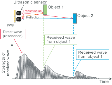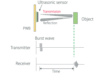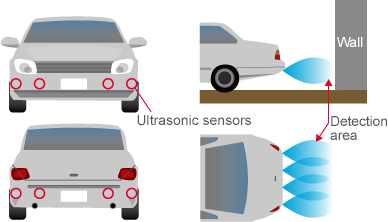 Here we present, as an application guide for ultrasonic sensors, information on the operating principle of distance detection and on the usage and applications of ultrasonic sensors in PAS (parking assist) applications, human detection, double feed detection, and more.