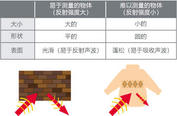 来自远处物体的反射波强度低,无法测量