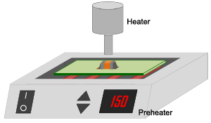 The preheater should have a wide heating area and be capable of preheating the entire subject board.
