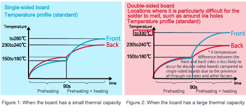 The ultimate temperature during heating must be increased in locations where it is particularly difficult for solder to melt, even in a multilayer board (Figure 2).