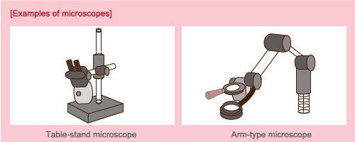 It is recommended to use a microscope as the magnifying device for the tasks. An area heater is used to preheat the board, so an arm-type stand should be used.