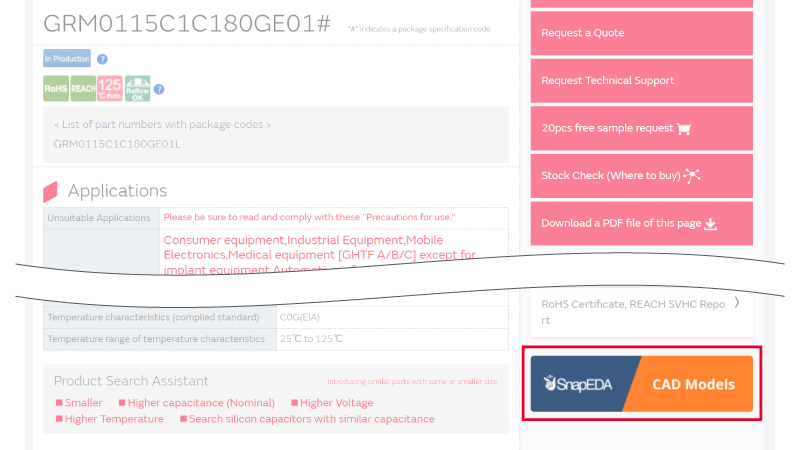 Data (symbol, footprint, 3D model) available for use on CAD software.