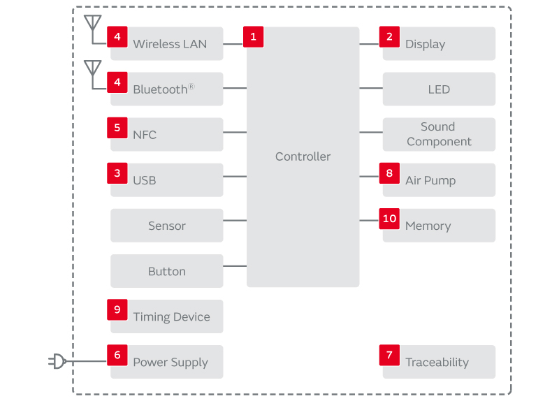 Bluetooth® Smart模块和NFC(NearFieldCommunication)等无线通信模块进行网络连接,提高日常健康管理的便利性