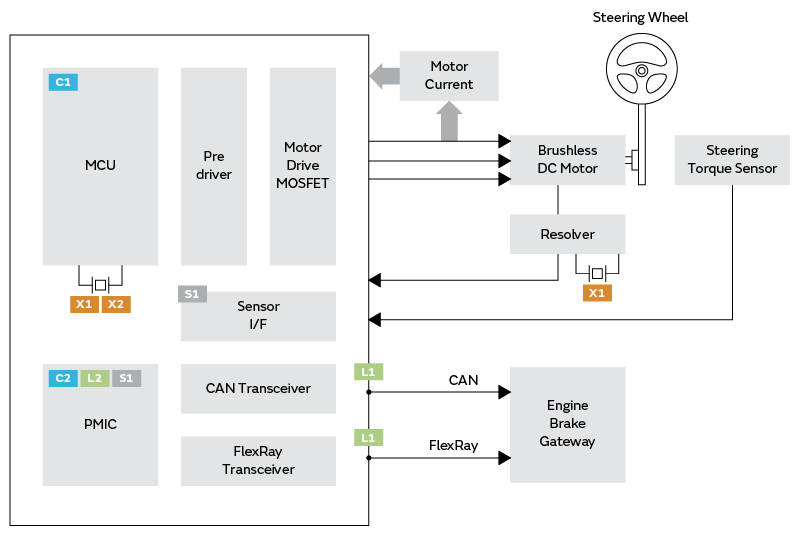 介绍用于EPS(电动助力转向)的产品阵容。