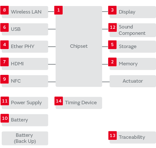 随着互联网和云服务的普及,易于携带和连接简单的平板电脑终端近年来也迅速普及。近来,预计它不仅可以用作第2台PC,而且还可以用于公司和培训。 村田利用电子元件的小型化和薄型化技术、高密度安装技术、传感技术等支持平板电脑终端的高性能化和高功能化,提供确保设备安全性的散热零件、低功耗可连接无线通信模块和实现舒适操作性的传感器等,为新时代的计算做贡献。