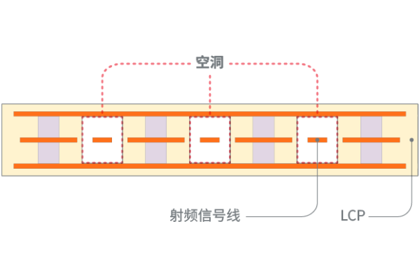 本产品通过在基板内部设置中空结构这一特色设计,实现了介电常数(Dk)低于2.0,并大幅降低传输损耗。