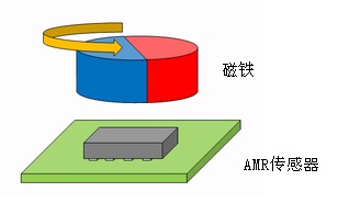 AMR传感器是使用磁性阻抗元件的磁性传感器。在电极的旋转轴上安装磁铁,通过接近它,可检测出旋转和位移。