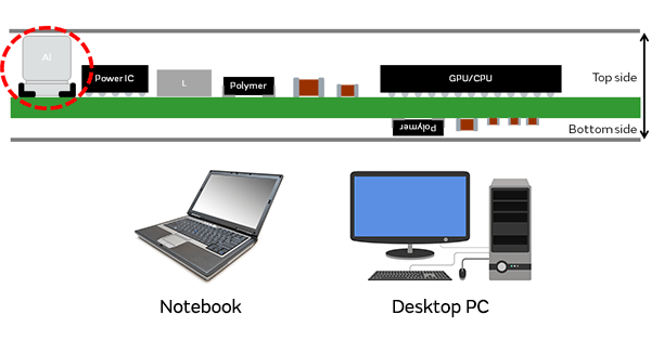 由于ECAS系列比铝电解电容器(绕组型)更薄,因此有助于设备的薄型化。