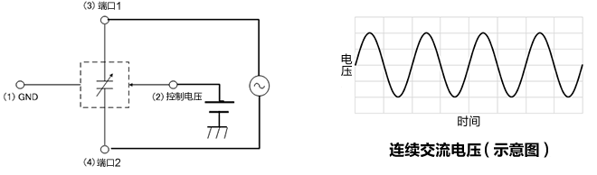 通过施加在端子上的电压来改变静电容量值。