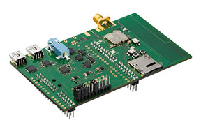 Includes 2 mini USB ports, board antenna, micro SIM slot, reset button, SMA connector for RF testing, I/O pin, and the pads needed for access.