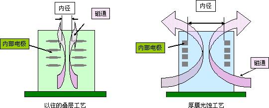 依靠高叠层精度,扩大内径,使磁通容易通过,实现高Q值特性!