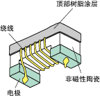 所谓绕线构造,是在氧化铝芯上将铜线绕成螺旋状。 与积层、薄膜方式相比,绕线结构能够用粗线绕制线圈,具备下列特点。