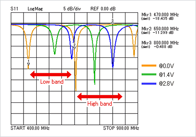 尤其是MDTV (ISDB-T/CMMB/DVB-H) 用天线,因为使用UHF频段 (470-800MHz) ,所以天线很难实现小型化。可以通过用电感器调整谐振频率的方法实现小型化,但是需要选定考虑到天线特性恶化的零件。此外,已开始使用的LTE也要求天线能够涵盖700MHz频段和多个波频带。尤为引人注目的一项技术是切换方式,即用开关等切换1个天线单元,从而改变频率。该切换方式有时也采用集中常数 (电感器、电容器) ,与开关一起调整频率。