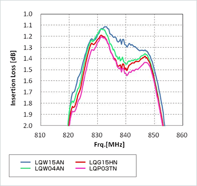 根据以上情况,有必要对SAW滤波器的整合回路RF电感的Q特性、偏差值、尺寸、成本等方面,进行比较讨论之后做出选择。在贴装空间有剩余的情况下,Q值偏高的卷线电感LQW15/LQW04为理想的选择。此外,贴装空间有所限制的情况下,小尺寸0603、拥有较高Q值的LQP03HQ/LQP03TN_02为理想的选择。