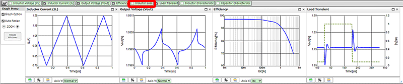 要确认功率电感器的功耗时则选择“Inductor Loss”。
