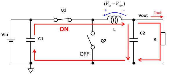 通过图示和计算式讲解降压型DC-DC转换器的工作原理。