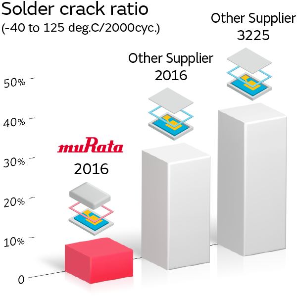 村田专有的颗粒筛选技术是村田的专利技术(专利号 : 4998620),在村田晶体谐振器的制造工序中实施。自2009年开始量产以来,在引入湿中处理后,关于出货产品中因颗粒引起的缺陷,相对于其他公司的ppm级别,村田晶体谐振器可以进行ppb级别的筛选。(本公司估算)