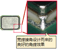 采用小尺寸且能够提高焊接圆角可视性的角电极形状。
