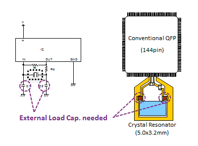 CERALOCK比传统的晶体谐振器小。村田的CERALOCK有两个内置电容器,因此两个外部电容器不需要。