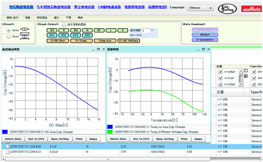 可以通过软件来确认偏压特性、温度特性以及频率特性。(SimSurfing)